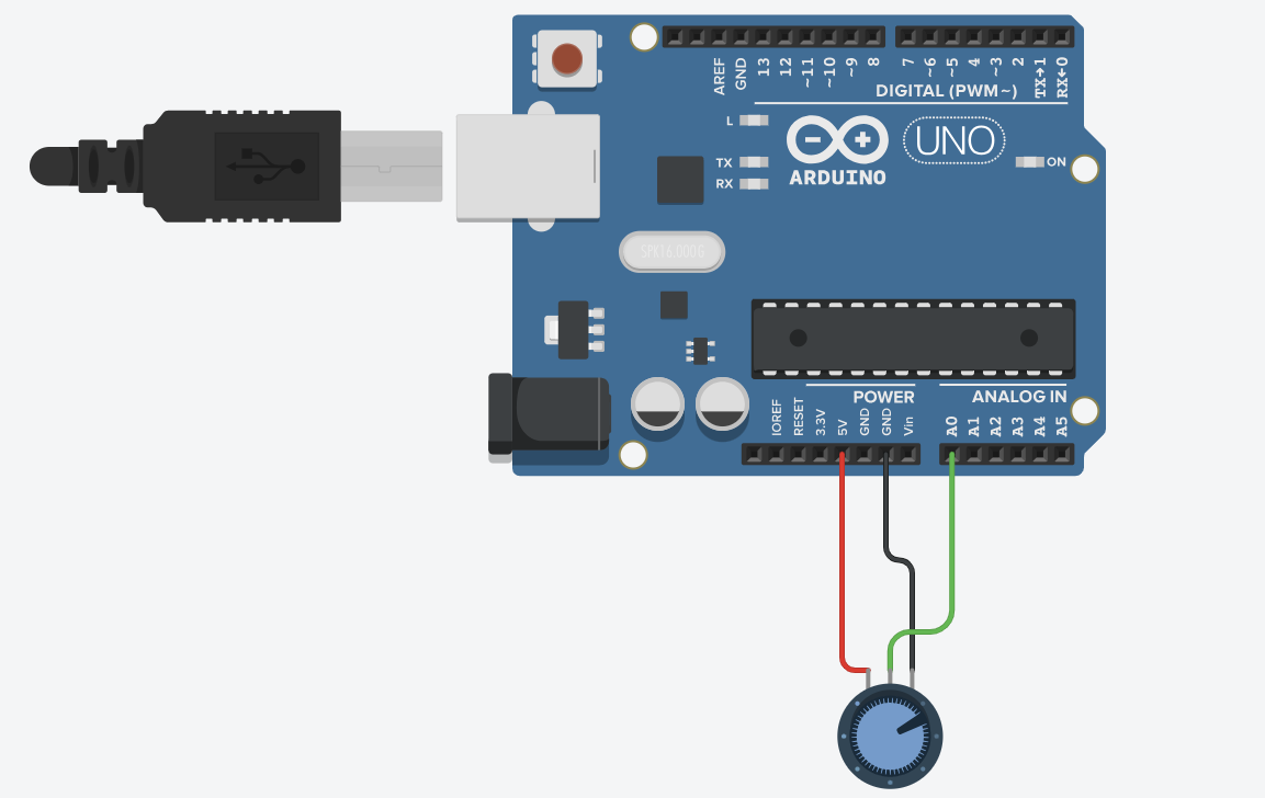 이처럼 아두이노와 가변 저항을 이용하면 간단한 아날로그 입력 신호 처리를 할 수 있으며, 이를 기반으로 다양한 프로젝트를 구현할 수 있습니다.